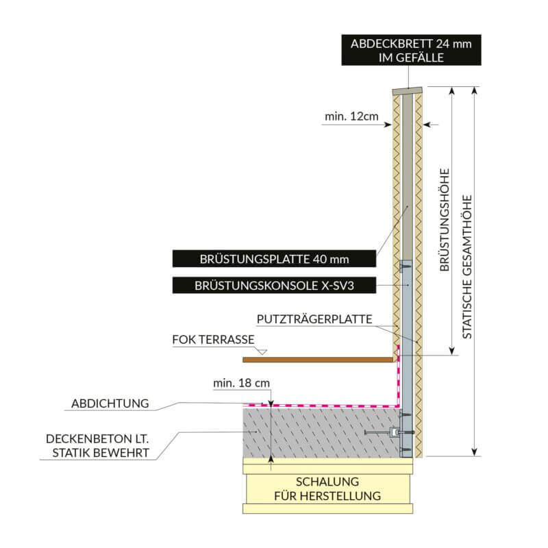 Systembrüstung SV3 für nachträgliche Montage auf eingegossene Montageschene