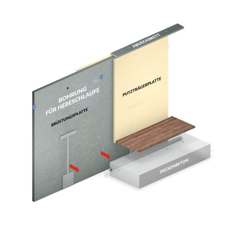 Systembrüstung SV3 für die nachträgliche, stirnseitige Verschraubung im Deckenbeton