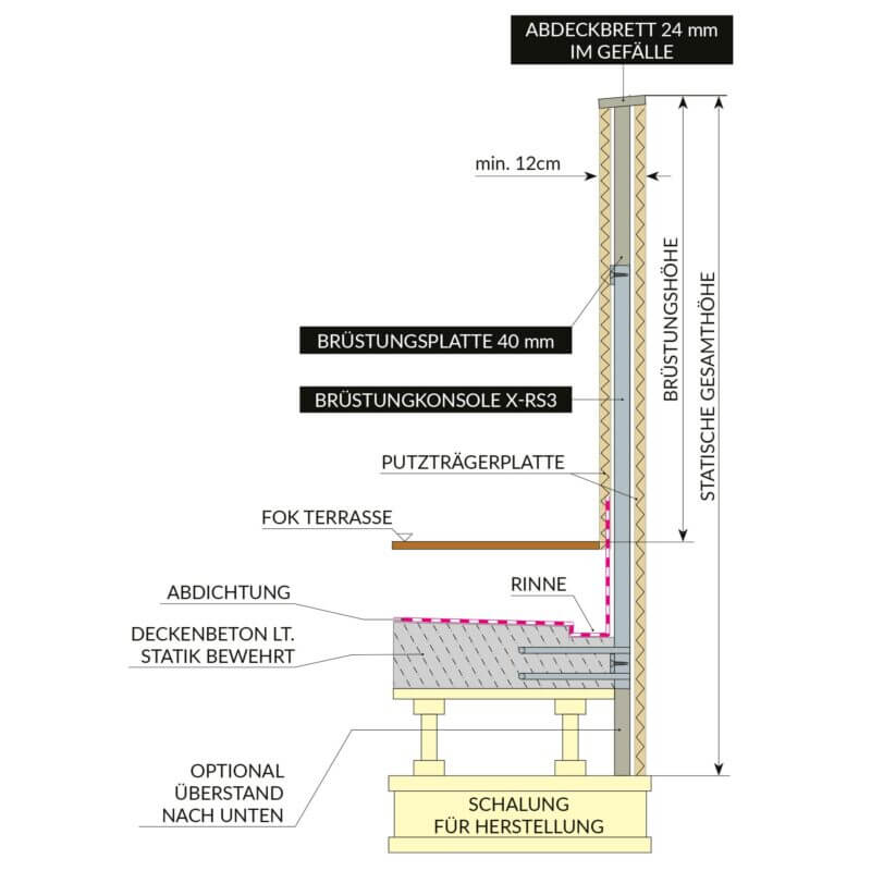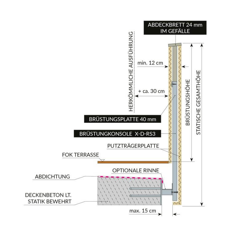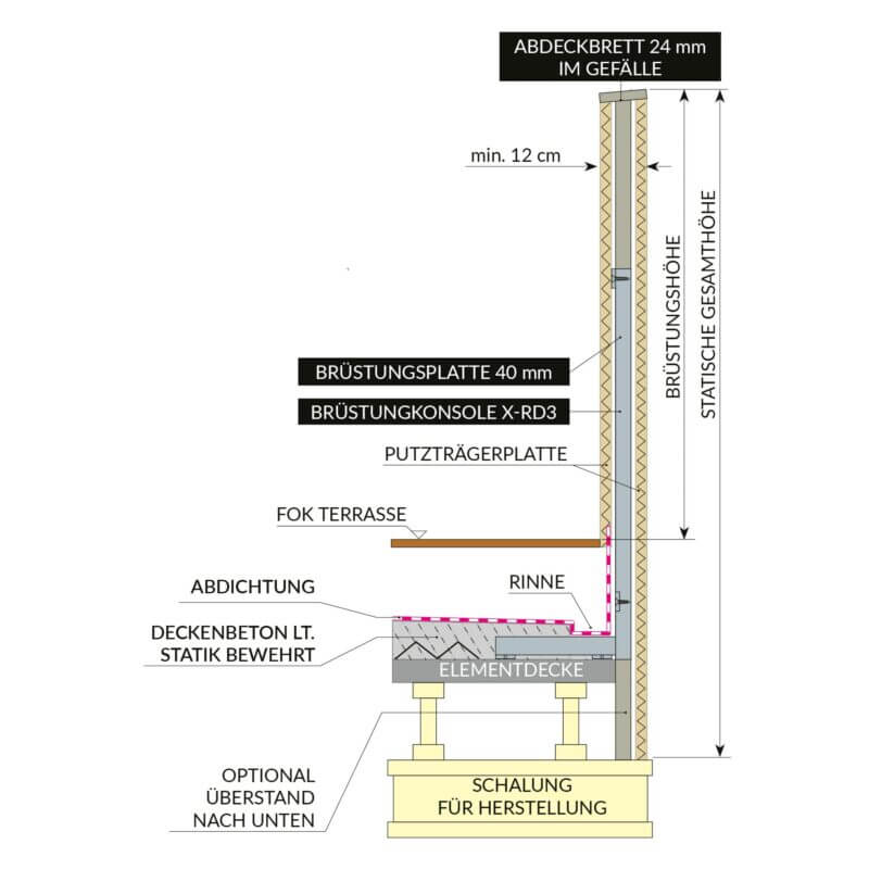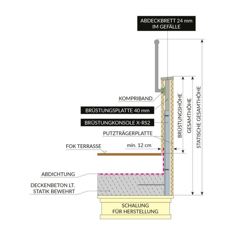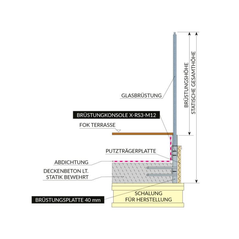 Systembrüstung X-RS3-M12 für Geländer auf Brüstungkonsole