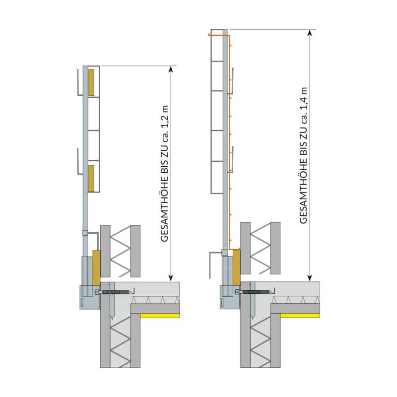 - Bleibt ohne Entfernung bis zur entgültigen Montage der Fassadenelemente.