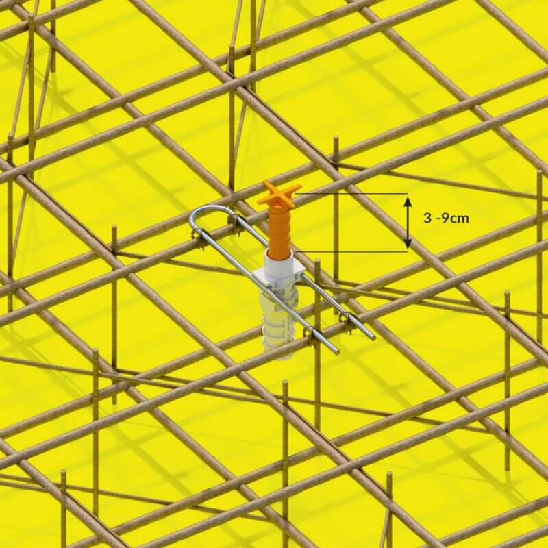 - Lage innerhalb der Standardbewehrung (Obere und untere Lage AQ55 bzw. 8mm Abstand max. 15cm).