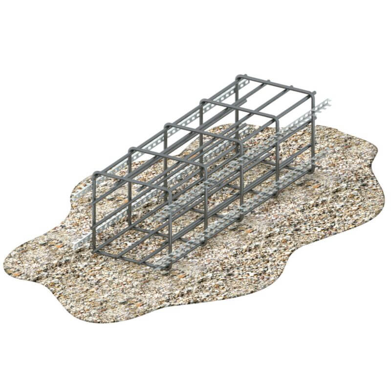 1. Betonabstandhalter durchgehend an Bewehrungskorb drahten.